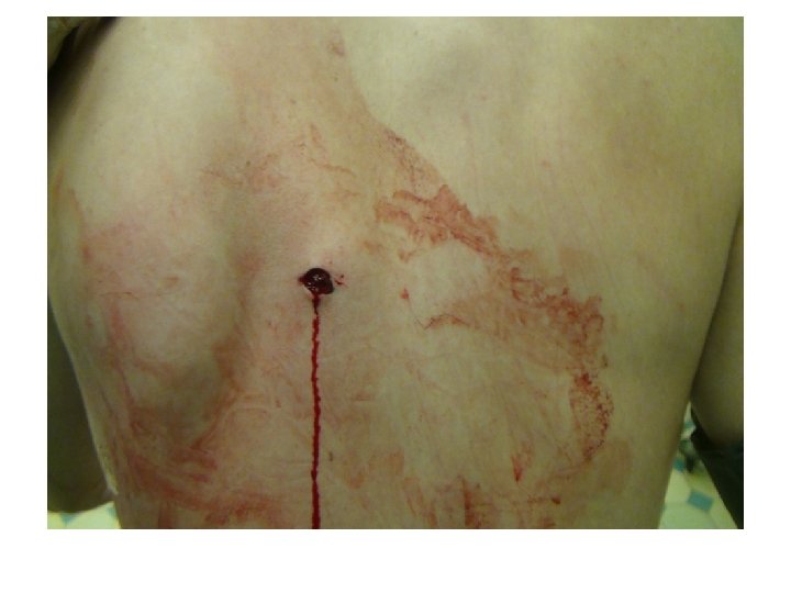 • Пациент К. 27 лет поступил в клинику ВПХ 08. 10. 2013 г • Доставлен бригадой СМП с диагнозом: Проникающие ранения грудной, брюшной полостей, колатая рана левого бедра, перелом костей спинки носа. Шок 1. • На месте проишествия АД 90/50 мм рт ст ЧСС 120 уд/мин, сознание ясное, запах алкоголя • Бригадой СМП выполнено обезболивание, наложены окклюзионные повязки, инфузия 600 мл кристаллоидных растворов