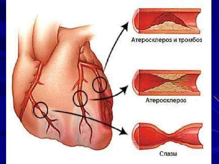 Транзиторная ишемия Фиксированная коронарная обструкция (бляшка, тромб) Динамическая коронарная обструкция (вазоспазм) Повышение потребности миокарда в О 2 Уменьшение поступления О 2 в миокард (Стенокардия напряжения) (Спонтанная стенокардия) Депрессия ST Элевация ST