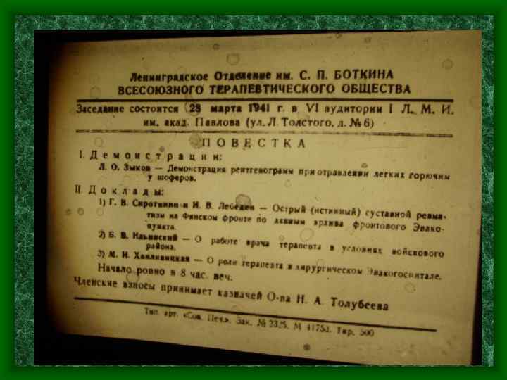 «Сейчас для нас совершенно ясно, что в войсковом районе нам нужны терапевты не столько в качестве помощников хирургов при операциях, сколько прежде всего в качестве полноценных терапевтов -специалистов, имеющих в труднейших условиях стационара ДМП лечить пневмонию у тяжело раненых в живот и в грудь, хорошо знающих уход за тяжело ранеными» .