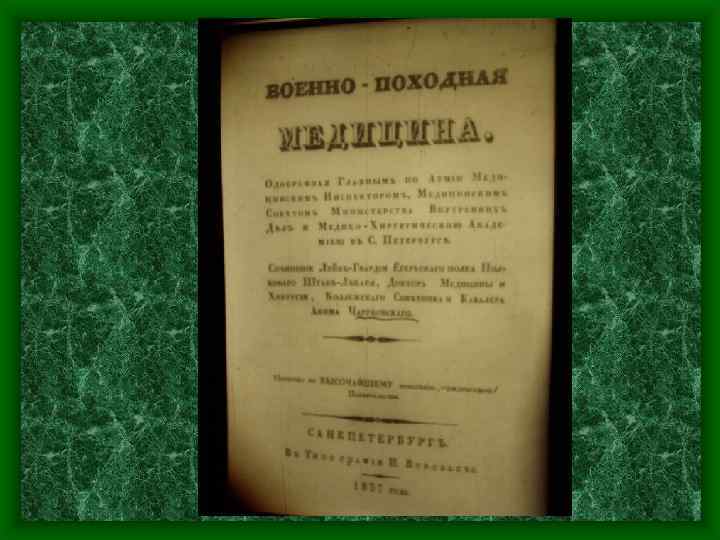 «Солдат как человек, подобно прочим людям, подвержен многоразличным недугам; но как воин он поражается сверх того особенными болезнями, с течением военных обстоятельств значительно измененными» .