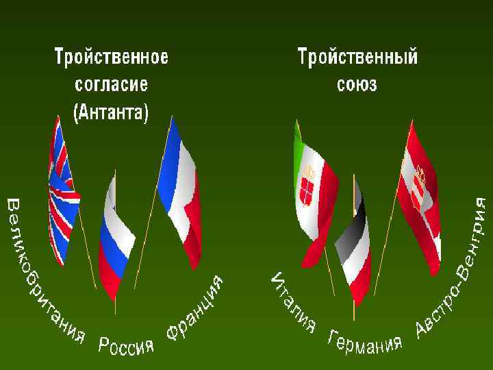 На сторону Антанты переходит Италия Тройственный союз перестает существовать Четверной союз: Германия, Австро. Венгрия, Османская империя и Болгария