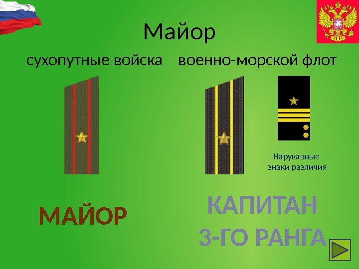 Майор сухопутные войска военно-морской флот Нарукавные знаки различия МАЙОР КАПИТАН 3 -ГО РАНГА