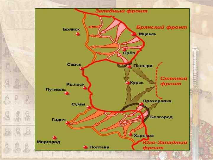 В Великой Отечественной войне было десять главных сражений, из которых первые два по значимости – под Москвой и Сталинградом. 5 июля 1943 года. Третьим решающим стало сражение на Курской дуге. Орел, Курск, Белгород Три города «огненной дуги» .