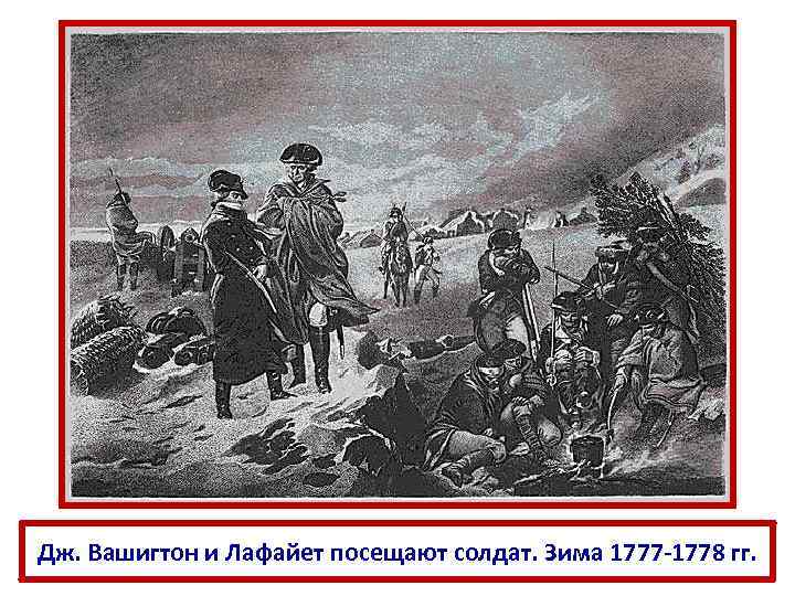 Дж. Вашигтон и Лафайет посещают солдат. Зима 1777 -1778 гг.