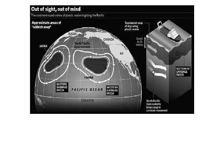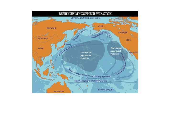 “Великое тихоокеанское мусорное пятно” (Great Pacific Garbage Patch) “Тихоокеанский мусороворот” (Pacific Trash Vortex) “Северная тихоокеанская спираль” (North Pacific Gyre) “Тихоокеанский мусорный остров”