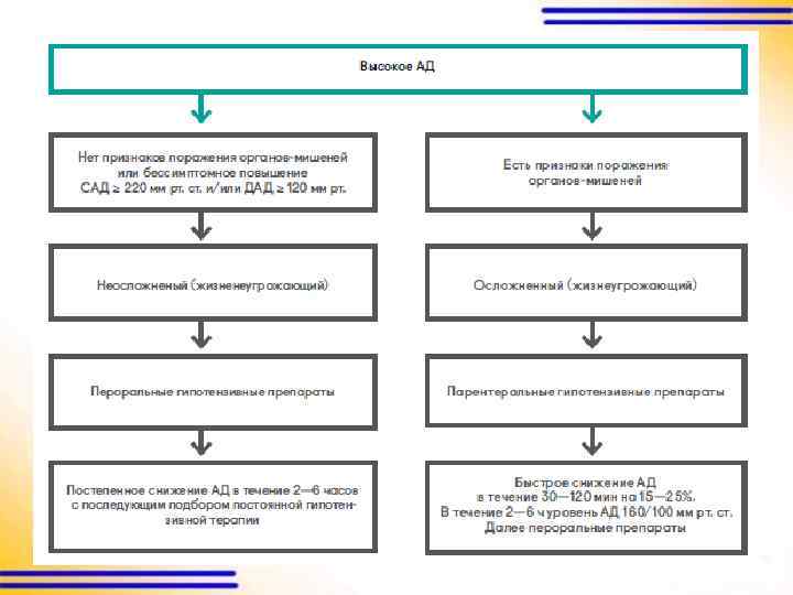 Осложненный гипертонический криз 1. острое клинически значимое повреждение органов-мишеней 2. требует немедленного осторожного снижения АД с применением парентеральных антигипертензивных средств