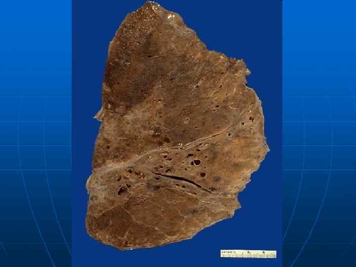 Рестриктивные болезни легких n Рестриктивные болезни легких характеризуются уменьшением объема легочной паренхимы с уменьшением жизненной емкости легких. В эту группу входят интерстициальные болезни легких. В основе рестриктивных легочных заболеваний лежит развитие воспаления и фиброза в интерстиции респираторных отделов легких, нередко на иммунной основе, ведущее к интерстициальному фиброзу и блоку аэрогематического барьера, что сопровождается клиническими симптомами прогрессирующей дыхательной недостаточности.