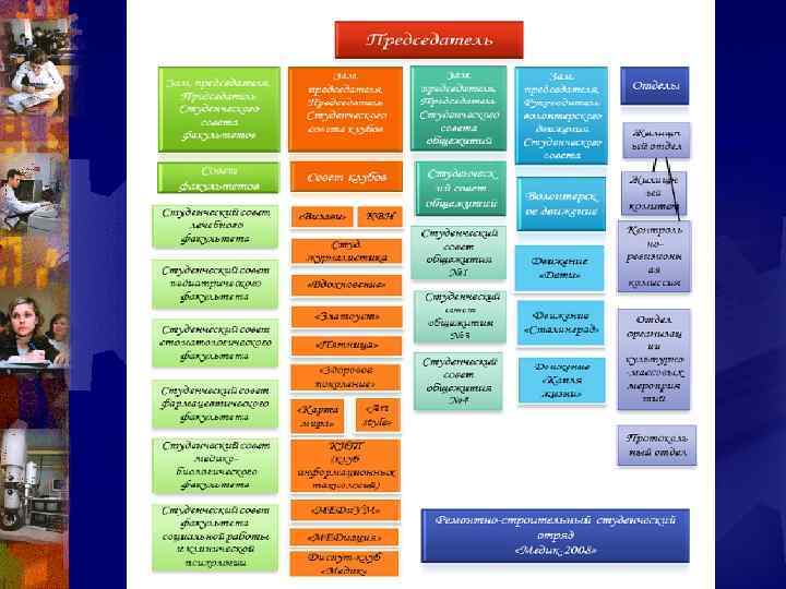 Студенческие клубы Волг. ГМУ ® ® ® в структуру Студенческого Совета Вол. ГМУ входят 15 клубов, которые помогают разнообразить студенческую жизнь. Все клубы работают по направлениям: культурно-развлекательное направление работы (КВН, Визави, туристический клуб «Карта Мира» ), творческое (театральная студия «Пятница» , литературно-поэтический клуб «Златоуст» , фото-клуб «Вдохновение» , студия «Аллегро» , клуб «Художников» , клуб Информационных технологий), волонтерское (патриотический клуб «Сталинград» , клуб «Дети» , донорское движение «Капля Жизни» ), интеллектуальное (клуб интеллектуальных игр «Медиум» и Диспут-клуб Медик), движение Здоровое поколение, которое пропагандирует здоровый образ жизни среди студенчества.