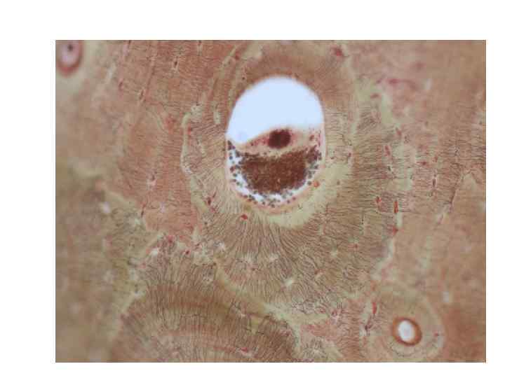 ПЛАСТИНЧАТАЯ КОСТНАЯ ТКАНЬ (СРЕЗ ТРУБЧАТОЙ КОСТИ) 1 - надкостница (периост), 2 - кровеносные сосуды, 3 - система наружных общих костных пластинок, 4 - оссеиновые волокна, 5 - система вставочных пластинок, 6 - остеоциты, 7 - система концентрических пластинок (остеон), 8 - спайная линия, 9 - кровеносный сосуд, 10 - прободающий канал, 11 - компактная кость, 12 - система внутренних общих костных пластинок, 13 - эндост, 14 - губчатая кость.