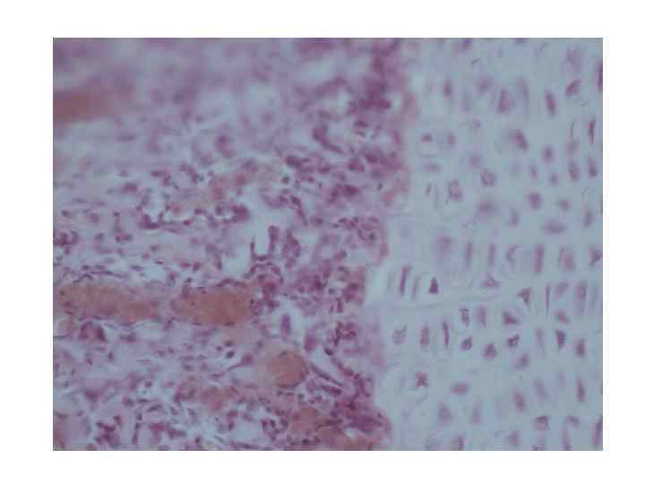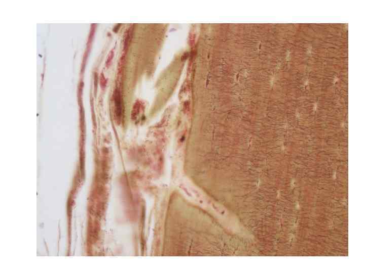 ГИСТОГЕНЕЗ КОСТИ НА МЕСТЕ ХРЯЩА 8 1 9 12 3 2 14 15 13 5 4 11 10 6 1 7 34 2 I II 8 III I, III – последовательные стадии остеогенеза 1 - надхрящница, 2 - эмбриональный хрящ, 3 - костная манжетка, 4 - надкостница, 5 - остеобласты, 6 - эпифиз, 7 - «точка окостенения» в эпифизе, 8 - эпифизарная хрящевая пластинка, 9 - пузырчатые хрящевые клетки, 10 - диафиз, 11 - сосуды, 12 - эндохондральная кость, 13 - остеокласты, 14 - обызвествленные остатки хряща, 15 - развивающийся костный мозг