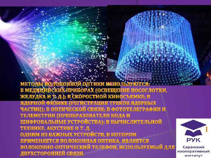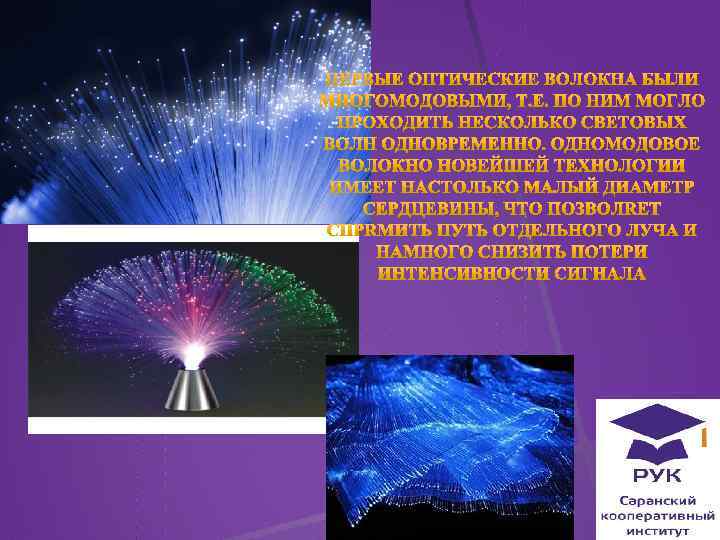 ВОЛОКОННАЯ ОПТИКА - ЭТО РАЗДЕЛ ОПТИКИ, В КОТОРОМ ИЗУЧАЮТСЯ РАСПРОСТРАНЕНИЕ СВЕТА И ПЕРЕДАЧА ИНФОРМАЦИИ ПО СВЕТОВОДАМ. ЭТО ОДНО ИЗ НАИБОЛЕЕ БЫСТРО РАЗВИВАЮЩИХСЯ НАПРАВЛЕНИЙ СОВРЕМЕННОЙ ЛАЗЕРНОЙ ФИЗИКИ.