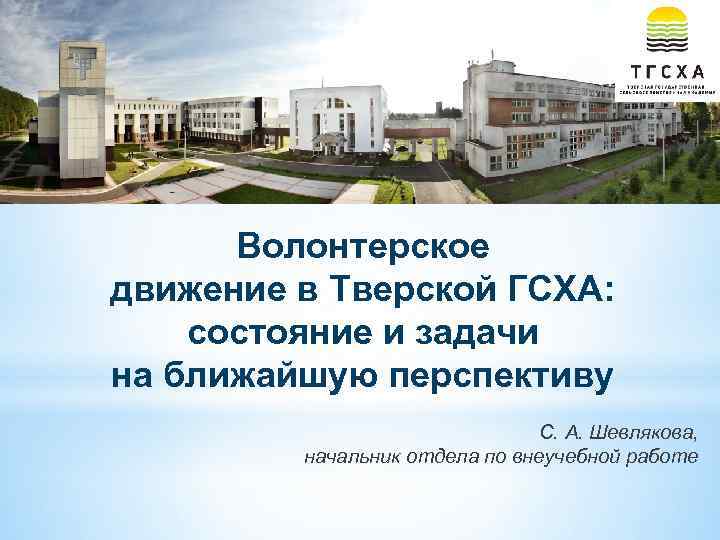 Волонтерское движение в Тверской ГСХА: состояние и задачи на ближайшую перспективу С. А. Шевлякова, начальник отдела по внеучебной работе