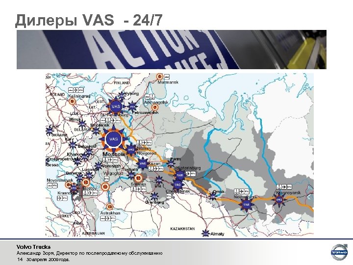 Дилеры VAS - 24/7 Volvo Trucks Александр Зоря, Директор по послепродажному обслуживанию 14 30 апреля 2009 года.