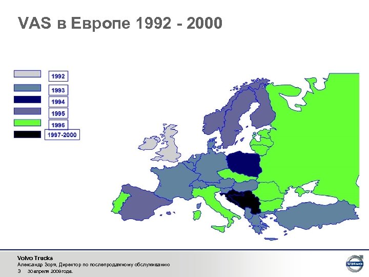 VAS в Европе 1992 - 2000 Volvo Trucks Александр Зоря, Директор по послепродажному обслуживанию 3 30 апреля 2009 года.