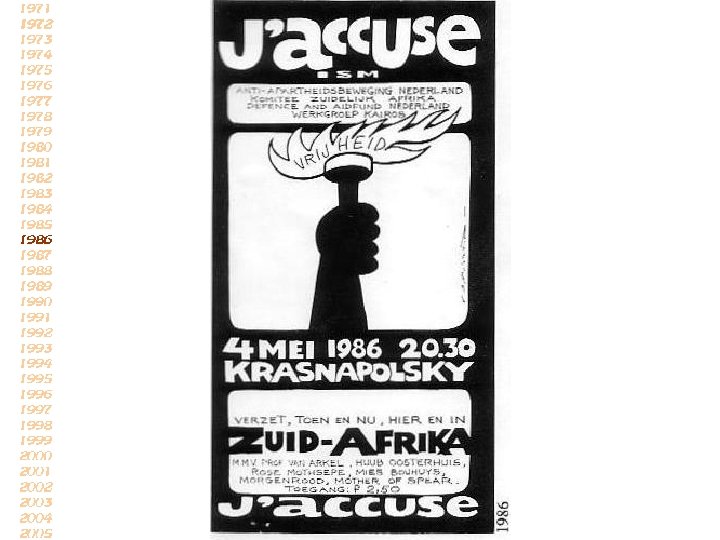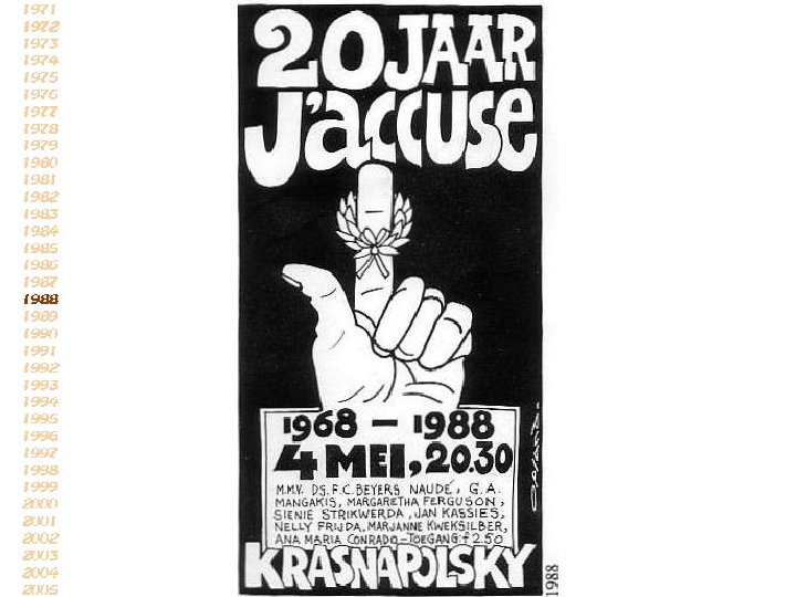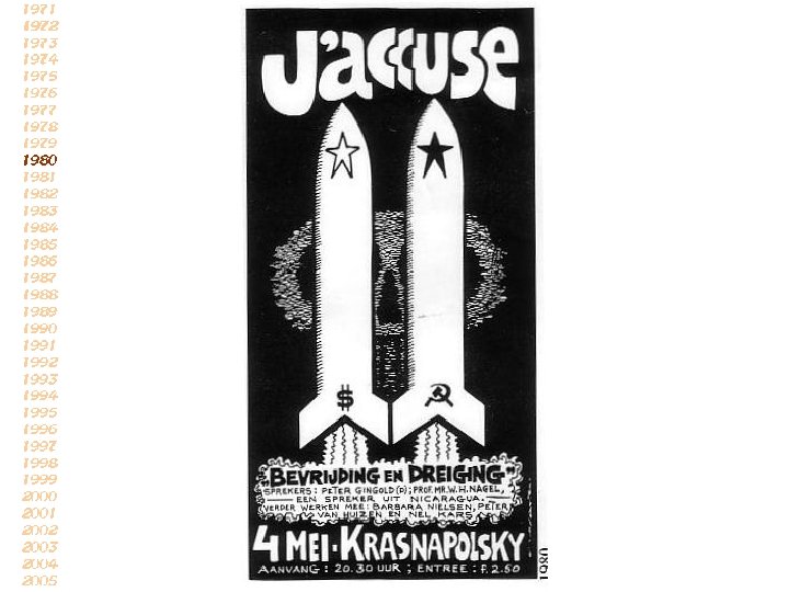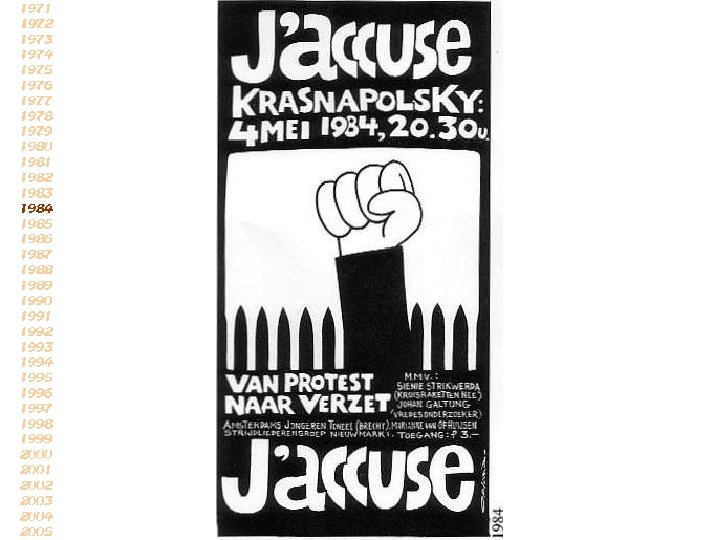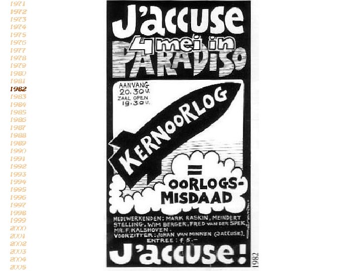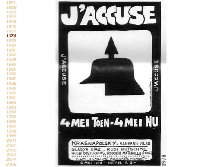 De strijd van diegenen, die ieder jaar op de vierde mei worden herdacht, is allerminst afgelopen: nog steeds worden op veel plaatsen in de wereld, ook in ons eigen land, de mensenrechten geschonden, en daarom geldt ook vandaag het protest uit de jaren 40 -45 (reactie van J’accuse in 1971)