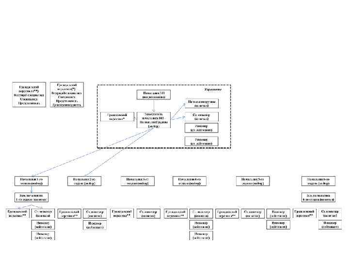 Начальник ВП (майор) Управление Ст. инженер Инженер (старший лейтенант) … Начальник 9 -го отдела Начальник 1 -го отдела Инженер (старший лейтенант) Гражд. персонал: Ведущий специалист Специалист Представитель Экономист Делопроизводитель