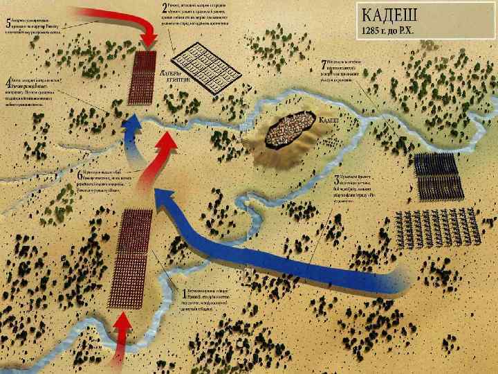 Войны с хеттами. В 1303 до н. э. Египет вернул Палестину. Подчинение Финикии, Южной и Центральной Сирии. Битва в долине Оронта, к северу от Кадеша. За Египтом – Палестина и Южная Сирия. Войны в Ливии и Нубии.