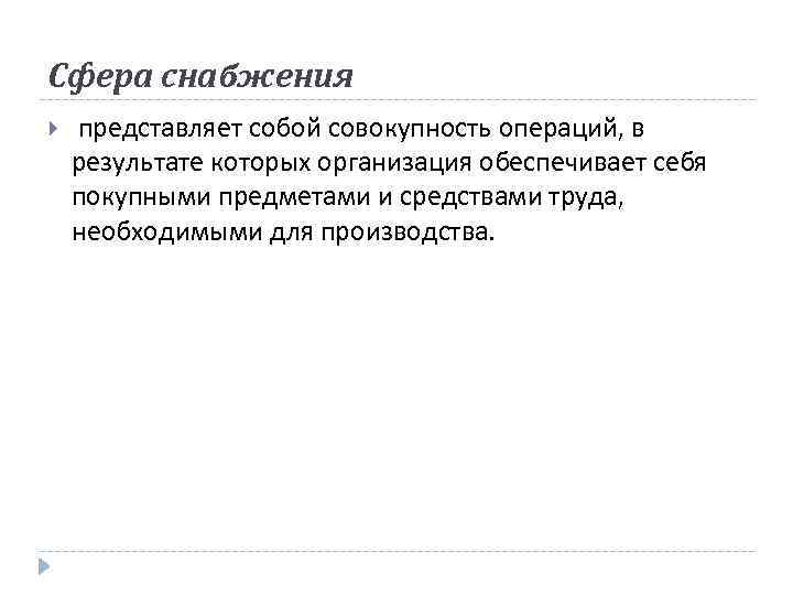 Сфера снабжения представляет собой совокупность операций, в результате которых организация обеспечивает себя покупными предметами и средствами труда, необходимыми для производства.