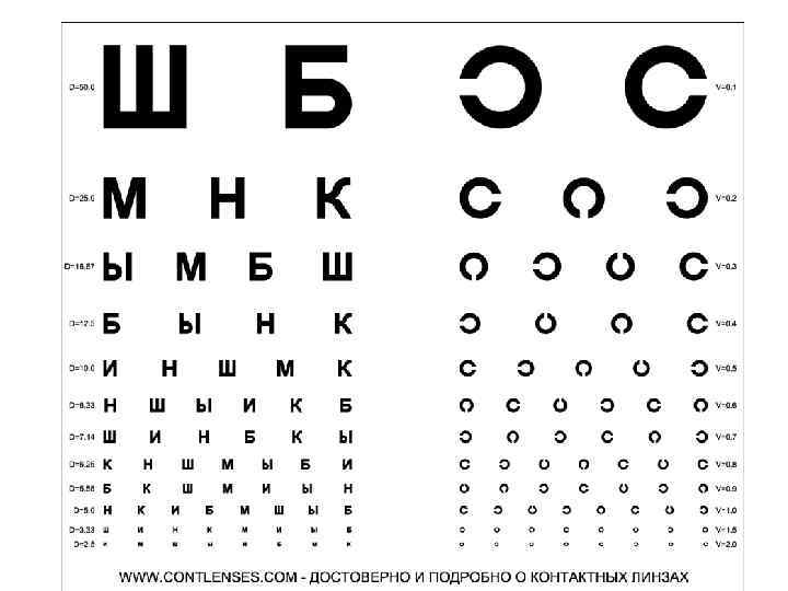 с помощью известной таблицы, разработанной в 1862 г. Германом Снелленом.
