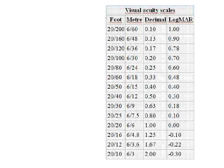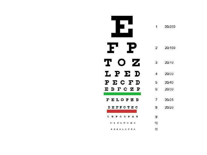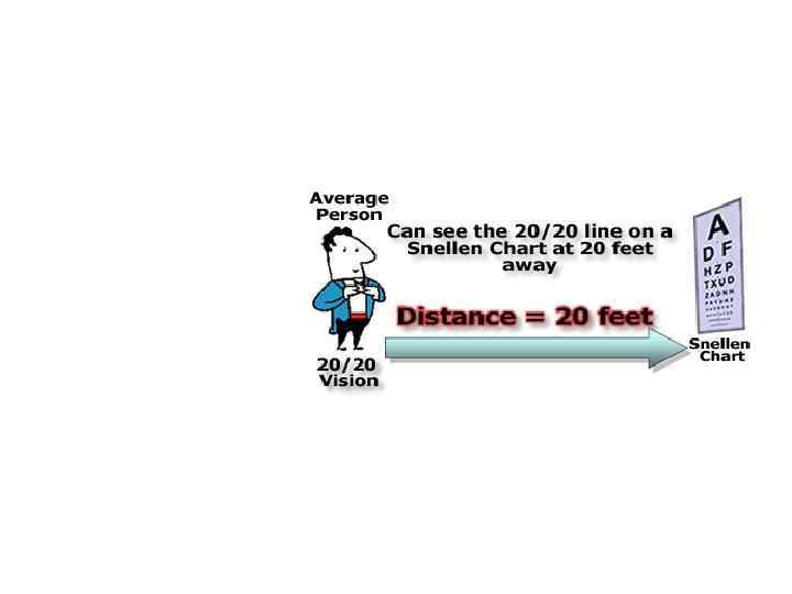 Острота зрения • способность глаза раздельно воспринимать точки, расположенные друг от друга на минимальном расстоянии. • Эталон остроты зрения – 1 минута