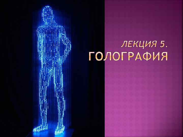 Вопросы: § Голография как способ записи и восстановления светового волнового поля § Опорная и предметная волны § Запись и воспроизведение голограмм § Свойства голограмм § Применение голографии