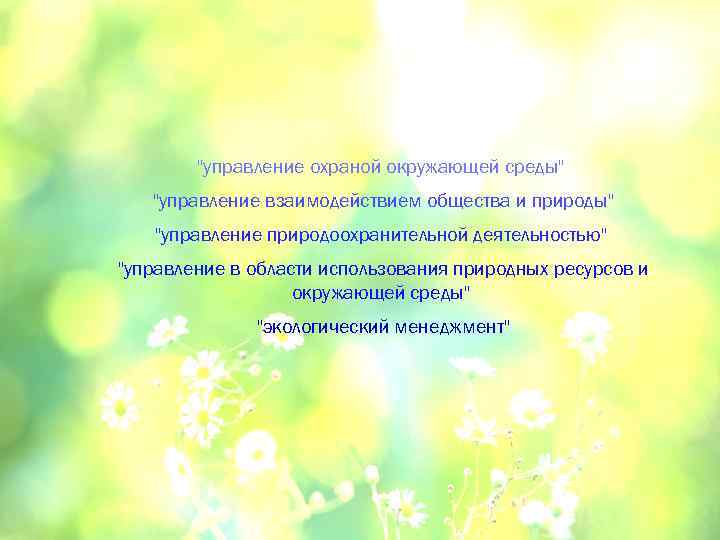 "управление охраной окружающей среды" "управление взаимодействием общества и природы" "управление природоохранительной деятельностью" "управление в области использования природных ресурсов и окружающей среды" "экологический менеджмент"