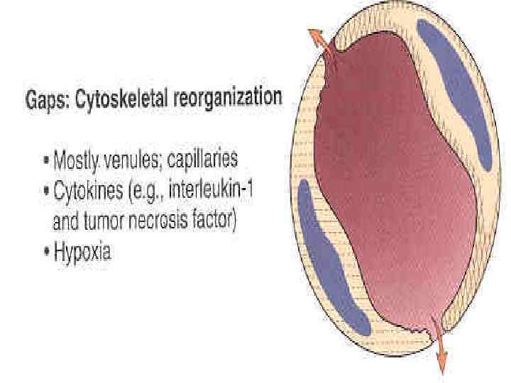 Сосудистые изменения è Сокращение эндотелия сосудов и реорганизация цитоскелета è Эндотелиальное повреждение есть результат некроза эндотелиальных клеток è Лейкоцит-зависимое повреждение