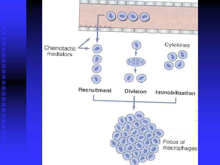 Образование макрофагов при хроническом воспалении è Задержка макрофагов в циркуляторном русле è Локальная пролиферация макрофагов è Иммобилизация макрофагов