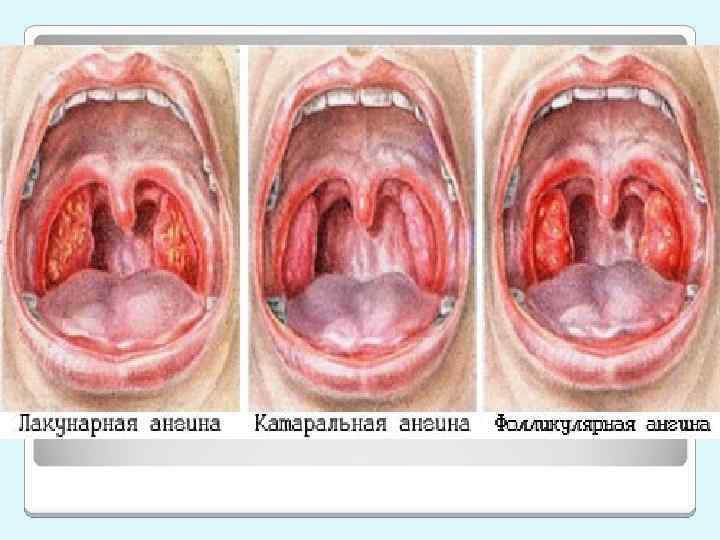 Различают следующие формы ангин: катаральная - начинается остро, в горле появляется ощущение жжения сухости, першения, а за тем небольшая боль при глотании. Беспокоит общее недомогании, разбитость головная боль. Температура обычно субфебрильная. Фарингоскопически миндалины гиперемированы, несколько увеличены, местами могут быть покрыты тонкой пленкой слизисто-гнойного экссудата. Язык сухой, обложен. Часто имеется небольшое увеличение регионарных лимфатических узлов. Обычно болезнь продолжается 3 -5 дней.