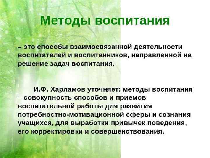 Система воспитания совокупность методов и приемов, посредством которых осуществляется процесс формирования личности 46