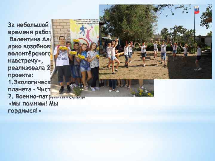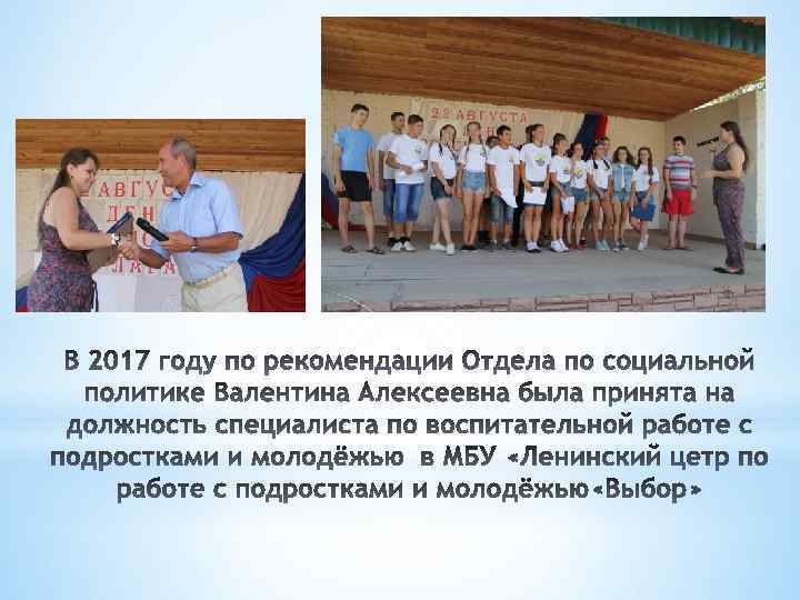 "Воспитание является искусством, а не ремеслом в этом корень учительского дела". Л. Н. Толстой Валентина Алексеевна Кольянко – специалист по работе с подростками и молодежью