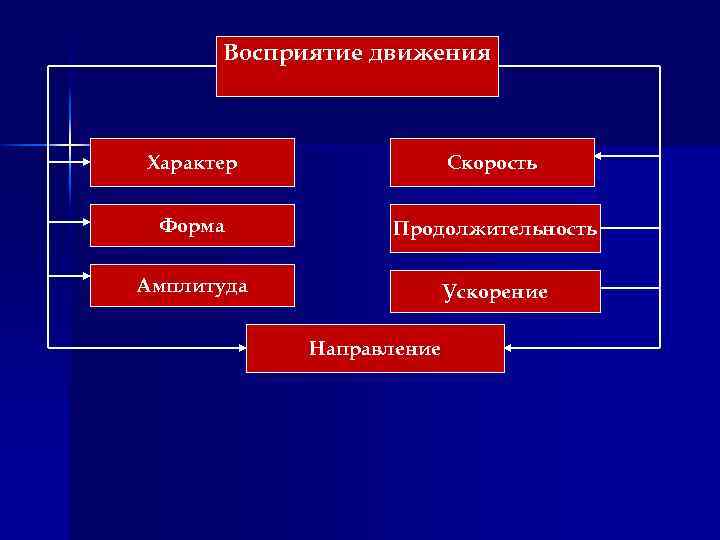 Восприятие движения Характер Скорость Форма Продолжительность Амплитуда Ускорение Направление