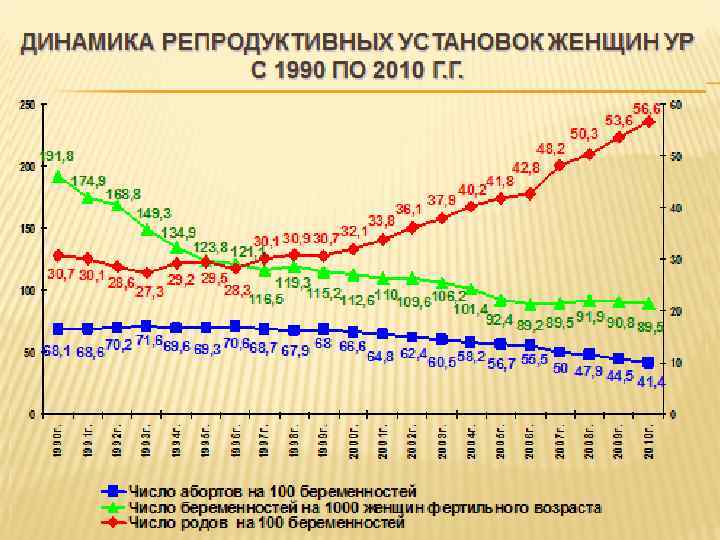 Одним из критериев определяющих социальное благополучие в обществе является ориентация семьи и женщины в частности на реализацию репродуктивного потенциала В УР как и в РФ в динамике за 4 года средний возраст женщин, рожающих детей, составляет 2627 лет. Каждая третья в связи с материальными недостатками отказывается от дальнейшей реализации своего репродуктивного потенциала.