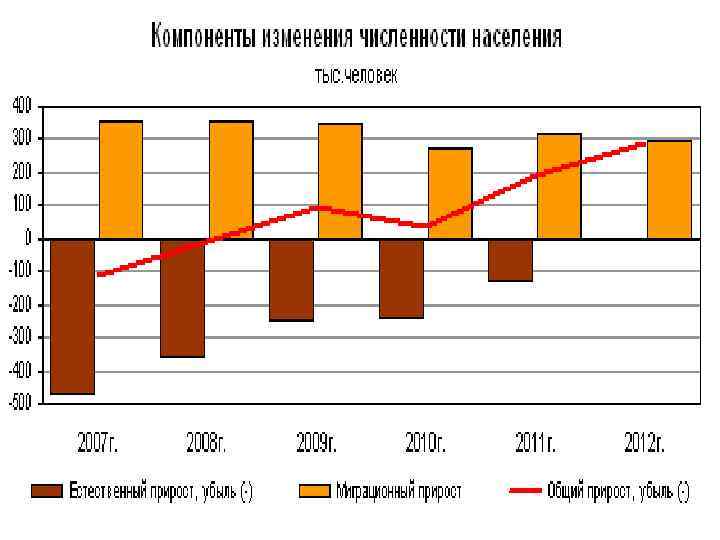 Максимальный естественный прирост имеют не завершившие демографический переход республики Чечня, Ингушетия, Дагестан, а также Тыва В большинстве остальных республик Северного Кавказа и юга Сибири положительные значения небольшие В северных автономных округах (Ханты-Мансийском, Ямало-Ненецком) все еще высокий естественный прирост обусловлен более молодой возрастной структурой населения благодаря миграционному притоку прежних лет Также благодаря миграциям улучшился показатель Москвы, вместо устойчивой естественной убыли (-3, 5 на 1000 населения в 2005 г. ) в 2011 г. впервые зарегистрирован естественный прирост (+1, 1) из-за сильного снижения общего коэффициента смертности (до 9, 7 на 1000 населения) Значительное улучшение коэффициента естественного прироста произошло и в С. -Петербурге (с -7, 4 в 2005 г. до -1, 0 в 2011 г. )