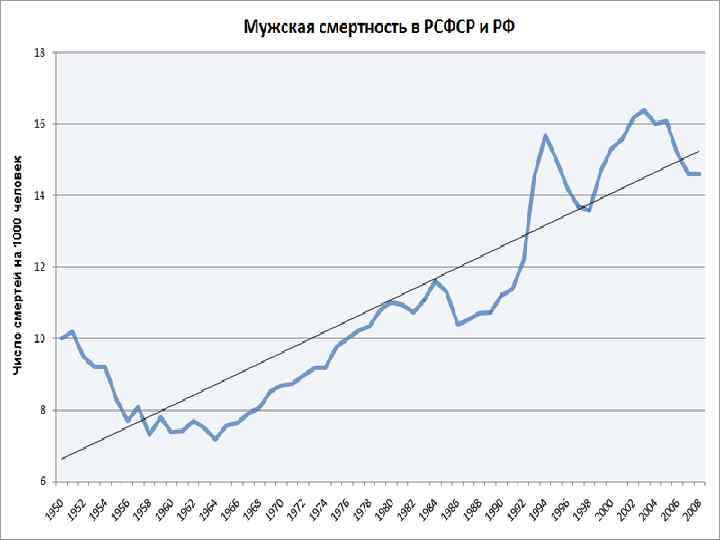 ДИНАМИКА СМЕРТНОСТИ МУЖСКОГО И ЖЕНСКОГО НАСЕЛЕНИЯ УДМУРТСКОЙ РЕСПУБЛИКИ С 1984 ПО 2011 ГГ. (НА 1000 ЖИТЕЛЕЙ)