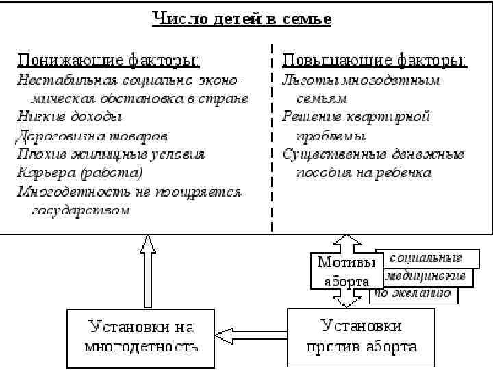 Собственно репродуктивное поведение направлено на реализацию полного репродуктивного цикла – от момента принятия решения о зачатии ребенка до его рождения Контрацептивное и абортивное поведение служат инструментами регулирования как каждого конкретного репродуктивного цикла (предотвращение зачатия, прерывание беременности при помощи искусственного аборта), так и всего репродуктивного цикла семьи (формирование желательных протогенетических и интергенетических интервалов – периодов между началом сожительства и рождением первого ребенка и интервалов между рождениями всех последующих детей) для достижения желаемого числа детей