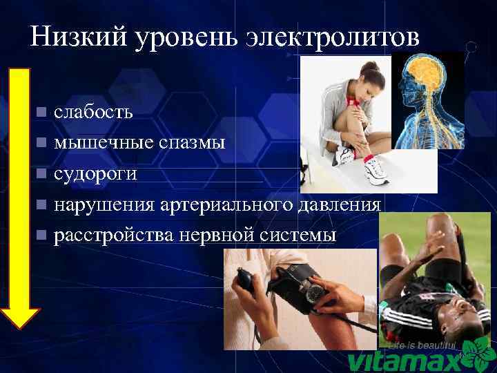 Низкий уровень электролитов слабость n мышечные спазмы n судороги n нарушения артериального давления n расстройства нервной системы n 14