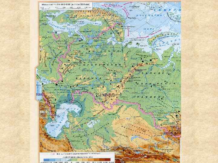 Факторы оказавшие влияние на формирование рельефа: • • Восточно-Европейская равнина практически полностью совпадает с Восточно-Европейской платформой. Небольшие холмистые участки возникли в результате разломов и других сложных тектонических процессов. Высота некоторых возвышенностей и плоскогорий достигает 600 -1000 метров. Балтийский щит Восточно-Европейской платформы находился в центре оледенения На территории Русской равнины платформенные отложения залегают практически горизонтально Где складчатый фундамент выступает на поверхность, образуются возвышенности и кряжи (например, Среднерусская возвышенность и Тиманский кряж). В среднем высота Русской равнины составляет около 170 метров над уровнем моря. Наиболее низкие участки на побережье Каспия (его уровень примерно на 30 метров ниже уровня Мирового океана). Свой отпечаток на формирование рельефа Восточно-Европейской равнины наложило оледенение.