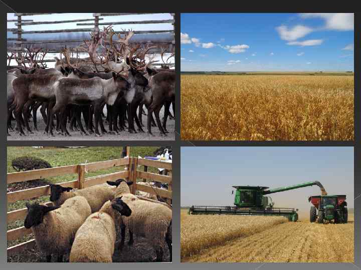 СЕЛЬСКОЕ ХОЗЯЙСТВО Площадь сельскохозяйственных угодий в Восточной Сибири составляет 23 млн. га. Структура сельскохозяйственных угодий выглядит следующим образом: пашня – 39, 9% сенокосы – 12, 7% пастбища – 46, 9% многолетние насаждения – 0, 5%. Животноводство/Растениеводство • Оленеводство (север). • Мясо-молочное скотоводство (юг). • Овцеводство (Хакасия, Тыва). • Зерновые культуры. • Фуражные (овёс, ячмень).
