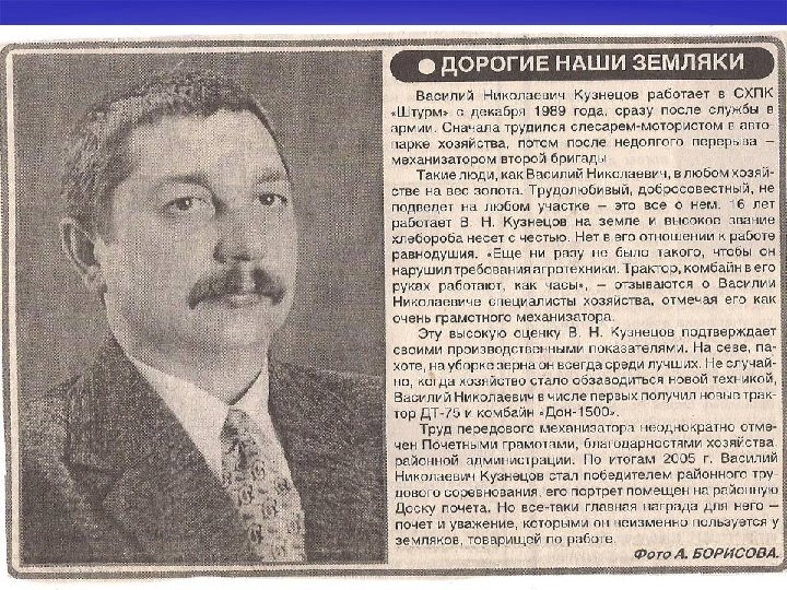 Famous people There are many interesting and famous people in our village: Veterans of the Great Patriotic War, excellent workers, talanted children.