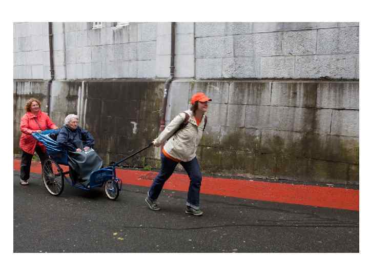но, пожалуй, самое распространенное занятие для добровольцев - помогать людям на инвалидных колясках передвигаться по городу, между прочим, горному
