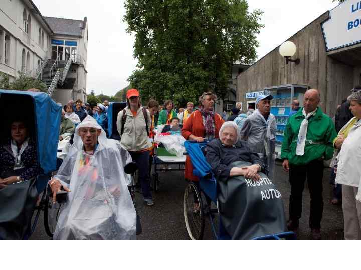 а «белых» поездах прибывают в основном те, кто во время паломничества будут жить в госпиталях: Пресвятой Богородицы, Святой Марии Фре и Salus Infirmorium «Ave Maria» (итальянский госпиталь). Но эти гостиницы не очень похожи на больницы в нашем понимании. Здесь нет врачей. В случае необходимости оказания медицинской помощи врачей вызывают из городской больницы. Здесь паломники-инвалиды имеют возможность только отдыхать в перерывах между службами, поесть и переночевать. Без сопровождающих сюда не принимают. Например госпиталь Святой Марии Фре был создан в 1878 году. После капитального ремонта в 1998 году госпиталь размещает 400 пациентов в 6 -ти, 4 -х и 2 -х комнатных палатах. В службе добровольцев 600 человек, которые сменяют друга в течение года. Постоянных сотрудников около 60 человек, среди которых медицинского персонала нет. Директор госпиталя так и не смог понять наш вопрос про палаты для вип-пациентов. Зачем они нужны и что в них такого особенного должно быть, если во всех палах есть все необходимое?