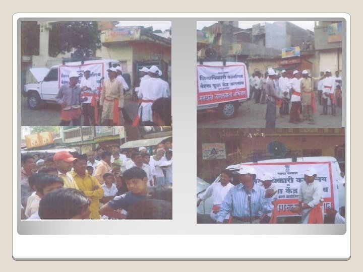 STREET PLAYS Nehru Yuva Kendra as the coordinator and lead organiser Cohesive dynamic and young group of volunteers Street plays at around 100 big village locations Extensive coverage by media Reached out to large population in the rural areas