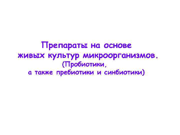 Пробиотики - биопрепараты по составу делятся на: • монокомпонентные • поликомпонентные • комплексные (синбиотики)