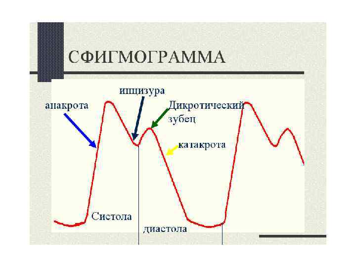 Пульс: А — схема регистрации пульса на сонной артерии; Б — артериальный пульс (сфигмограмма) сонной артерии: абв (анакрота) — повышение давления во время систолы, вг — снижение давления в конце систолы: д — захлопывание полулунных клапанов, ежз (катакрота) — снижение давления во время диастолы; В — венозный пульс (флебограмма). Отражение систолы предсердий (а), систолы желудочков (с), конец диастолы предсердий (v); Д — онкометрический датчик, Сф — сфигмограф