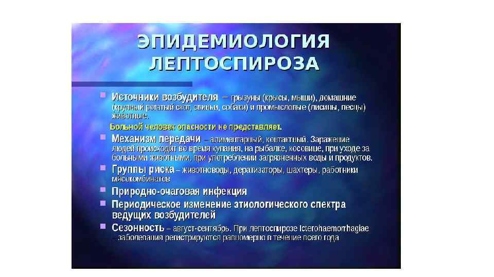 Патогенез. Лептоспиры проникают в организм человека через неповреждённые или повреждённые кожные покровы, а также слизистые оболочки полости рта и ЖКТ, глаз, носа, не вызывая никаких изменений в области входных ворот. Возбудители оседают в лимфатических узлах, откуда гематогенно (кратковременная лептоспиремия) распространяются по органам и тканям системы мононуклеарных фагоцитов, преимущественно накапливаясь в печени и селезёнке, почках, лёгких. Первичное диссеминирование способствует быстрому размножению возбудителей.