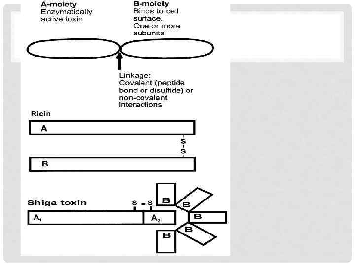 ШИГА- ТОКСИНЫ v Термолабильные токсины с типичной АВ – структурой v Субъединица А и пять субъединиц В. Пентамер В взаимодействует с рецепторами на поверхности клетки, субъединица А в цитоплазме распадается на А 1 и А 2; А 1 взаимодействует с большой субъединицей рибосомы, что приводит к прекращению синтеза белка и гибели клетки v Может взаимодействовать с рецепторами энтероцитов, макрофагов и нервных клеток v Обладает цитотоксическим, нейротоксическим и энтеротоксическим эффектами v Шига-токсин может вызывать гемолитический уремический синдром с развитием почечной недостаточности v Шигаподобные токсины отличаются по антигенным свойствам, имеют сходный механизм действия, менее токсичны