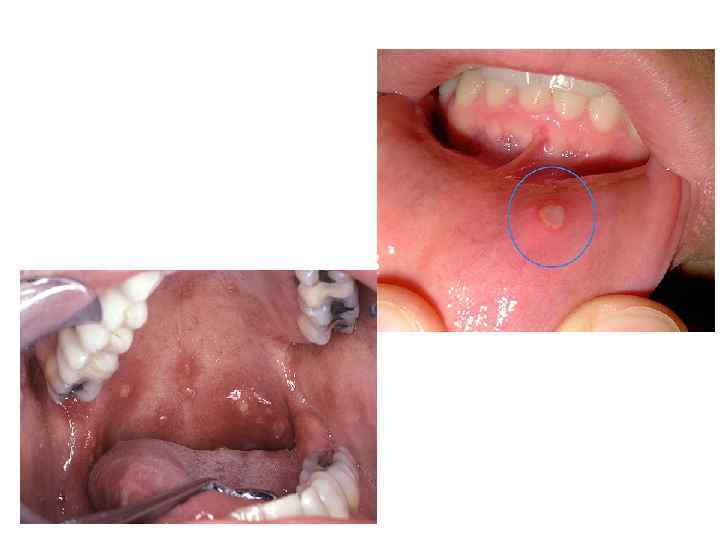 Симптомы ящура (продолж. ) • По мере распространения по организму, возбудитель продолжает фиксироваться на эпителиальных клетках, появляются вторичные воспалительные изменения на коже кистей (особенно в околоногтевой области и межпальцевых складках), через 1 2 дня появляются специфические воспалительные изменения на том месте, где были отёк и гиперемия – появляются афты. • Афты являются поверхностными изъязвлениями, болезненными при контакте с какой либо поверхностью, весьма затрудняющие акт жевания и глотания, также сопутствующим признаком является гиперсаливация (усиление слюнотечения). • Локализация афт – по краю языка, на дёснах, на нёбе и на зубах. Величина этих изъязвлений может быть от зерна до горошины.