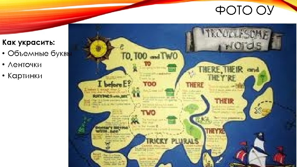 ФОТО ОУ Как украсить: • Объемные буквы • Ленточки • Картинки