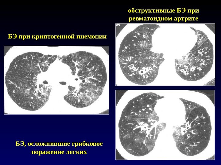 обструктивные БЭ при ревматоидном артрите БЭ при криптогенной пнемонии БЭ, осложнившие грибковое поражение легких